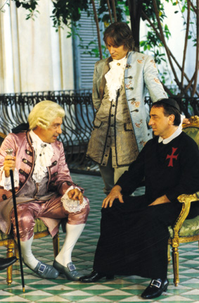 Regia/Director: Emidio Greco Soggetto/Subject: da om.rom.di Leonardo Sciascia Sceneggiatura/Screenplay: Emidio Greco Interpreti/Actors: Silvio Orlando, Tommaso Ragno, Renato Carpentieri, Marine Delterme, Yann Collette, Antonio Catania, Carlo Vitale, Enzo Vetrano, Vanni Materassi, Gilberto Idonea, Adriano Chiaramida, Sergio Seminara, Ubaldo Lo Presti, Vittorio Di Prima, Pietro Montandon Fotografia/Photography: Marco Sperduti Musica/Music: Luis Bacalov Costumi/Costume Design: Agnes Gyarmathy, Ivo Crnojevic Scene/Scene Design: Andrea Crisanti Montaggio/Editing: Bruno Sarandrea Produzione/Production: Factory, Rai Cinema, SDP Film, Parigi, Focus Film Filmproduction and Distribution Distribuzione/Distribution: Key Films S.r.l. Vendite all'estero/Sales abroad: Buskin Film censura: 96111 del 07-03-2002 Altri titoli: The Council of Egypt Trama: Dicembre 1782. Quando una tempesta fa naufragare la nave dell'ambasciatore del Marocco sulle coste della Sicilia per Giuseppe Vella, frate maltese di umili origini, giunge l'ora del riscatto. Abile simulatore s'improvvisa arabista, ingannando tutti, ambasciatore compreso. Nei panni dell'erudito, il frate decide di sfruttare ancor più la situazione: fa credere che un manoscritto arabo sulla vita di Maometto sia un fondamentale testo storico-politico, il "Consiglio d'Egitto". Incaricato di tradurre il testo, lo reinventa di sana pianta: il codice ha un contenuto esplosivo per la società del '700. Sinopsys: December 1782. When the Moroccan ambassador's ship is wrecked off the Sicilian coast during a storm, Giuseppe Vella, a humble Maltese monk has his redemption. He disguises himself as an expert on Arab matters and fools everyone, including the ambassador. Under the guise of intellectual, he decides to further exploit the situation, by making believe that an Arab manuscript on Mohammed's life is a fundamental historical and political document, known as, "the Council of Egypt". When he is ordered to translate the text, he writes it from scratch. The reinvented script has an explosive content for eighteenth century society. |
